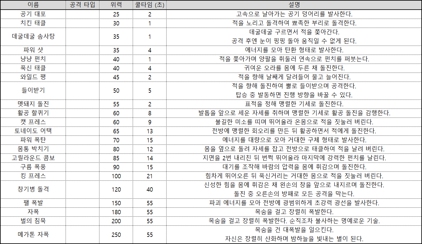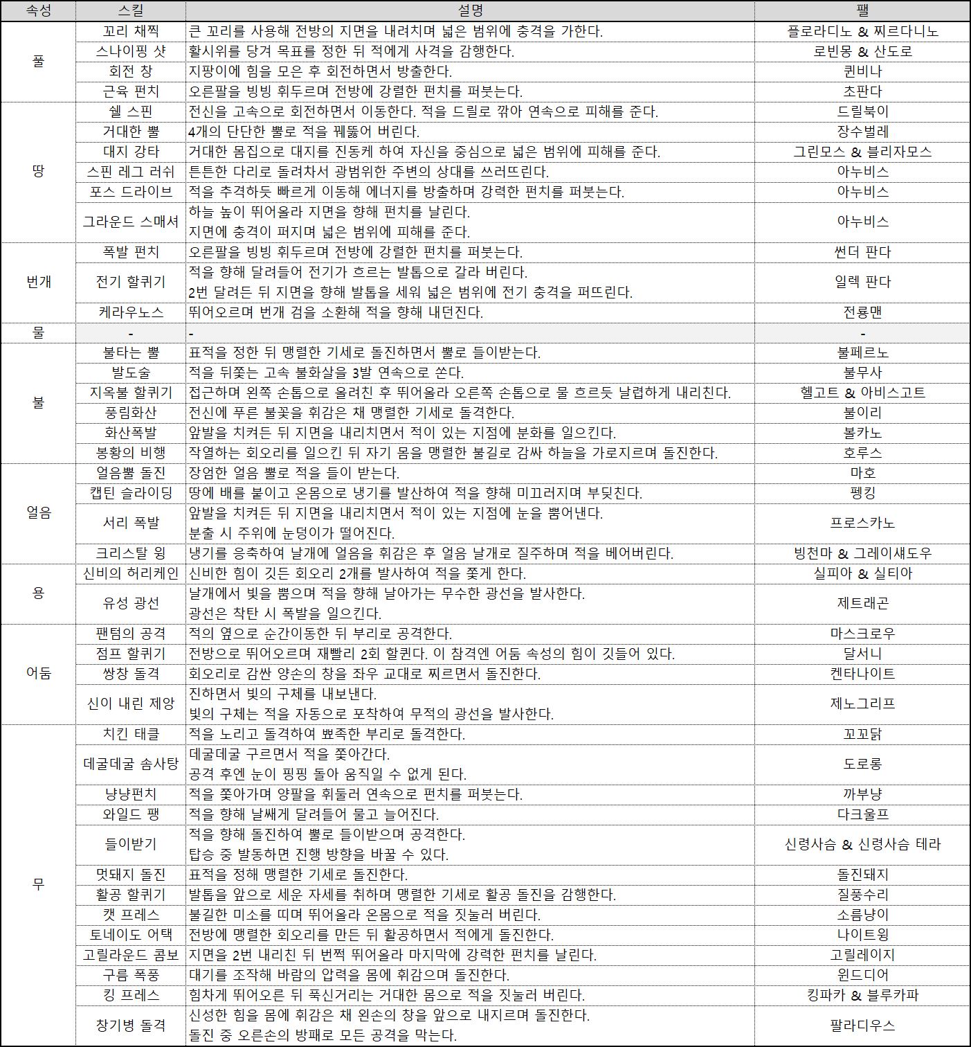 | 팰 스킬 | 설명 |