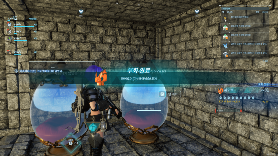 : [F] 버튼을 길게 누르거나 왼쪽 마우스 버튼으로 누르면 아래와 같이 팰이 부화된다.